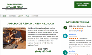 C&B Chino Hills Appliance Repair is proud to specialize in appliance repair for customers in Chino Hills, California and surrounding neighborhoods. Customers depend on us to repair all major brands and models of appliances for a price they can afford. Service includes 100% satisfaction guarantee and 12-month warranty.