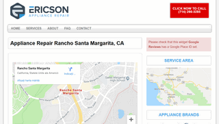 Call now for affordable service from our experienced appliance technicians! Ericson Appliance Repair - Rancho Santa Margarita can fix all name brand appliances and the newest models. Services include dryer repair, refrigerator repair, washing machine repair, stove repair & more! We're proud to serve Rancho Santa Margarita, California!