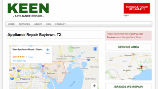 Keen Appliance Repair is proud to provide appliance repair for customers in Baytown, Texas and surrounding neighborhoods. Customers depend on us to fix all major models and brands of appliances for a price they can afford. Service includes 100% satisfaction guarantee and 12-month warranty.