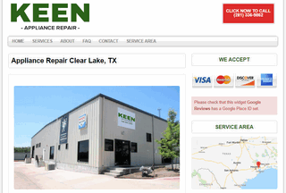 Keen Appliance Repair is proud to specialize in appliance repair for customers in Clear Lake, Texas and surrounding communities. Customers depend on us to fix all major models and brands of appliances for a price they can afford. Service includes warranty and 100% satisfaction guarantee.